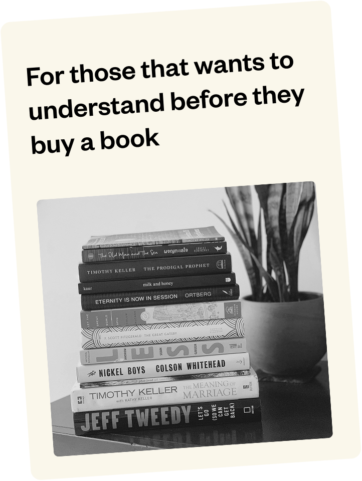 Each book comes with a structured slide experience that highlights the most important concepts, takeaways, and ideas—so you actually understand what the book offers, not just what it’s about.
